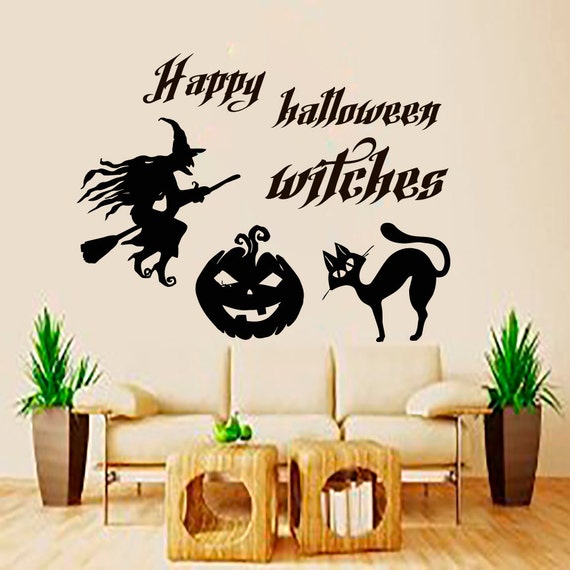 Happy Halloween Wall Stickers Party Decorations with Witch, Bats Halloween Wall Decor Pictures spook up your space with halloween wall décor. From eerie accents to festive touches, transform any room into a haunted haven this spooky season. Shop spooky signs, posters, and wall hangings to create a festive. check out our halloween pictures for wall selection for the very best in unique or custom, handmade pieces from our digital. adorn. Halloween Wall Decor Pictures.